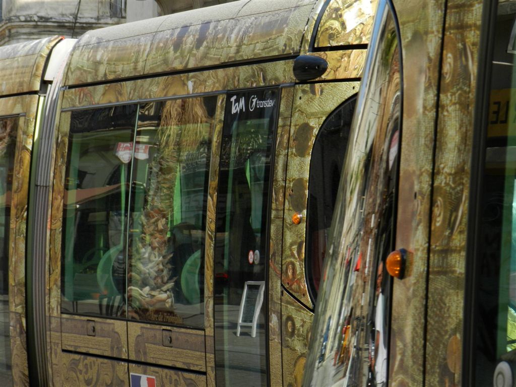 Boulevard du Jeu-de-Paume à Montpellier, le palmier qui cache la faible fréquentation de la ligne 4de tramway bouclée entre les stations « Observatoire » et « Corum », dans les deux sens. Photo prise le samedi 10 septembre 2016. Copyright : Anje34