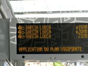 - Annonce de l’application du plan vigipirate sur le tableau électronique d’information de la station « Saint-Guilhem – Courreau » quai 4b, le mardi 13 septembre 2016, vers 11h20. Copyright : Anje34
