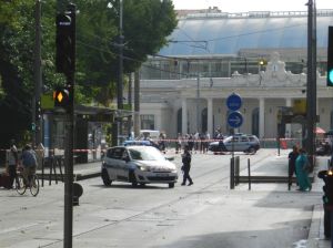 - Rue de la République à Montpellier, un cordon de sécurité a été dressé autour de la station « Gare Saint-Roch » commune aux lignes 3 et 4 de tramway, le mardi 13 septembre 2016, en fin de matinée. Copyright : Anje34