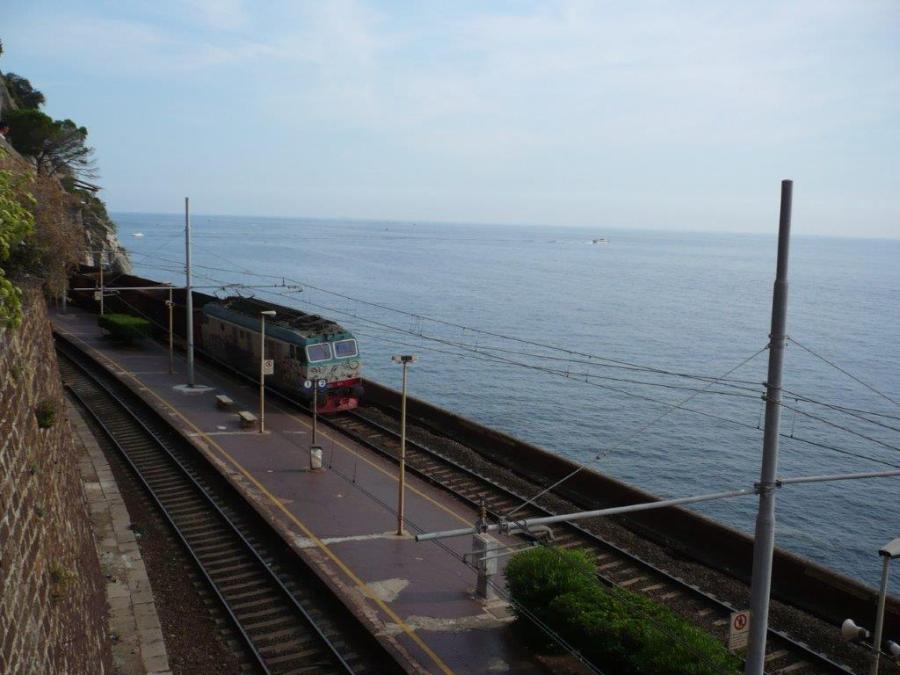 Autre vue de la halte de Manarola où un train de marchandise file vers Gênes, le mardi 25 août 2009. Copyright : Edouard Paris