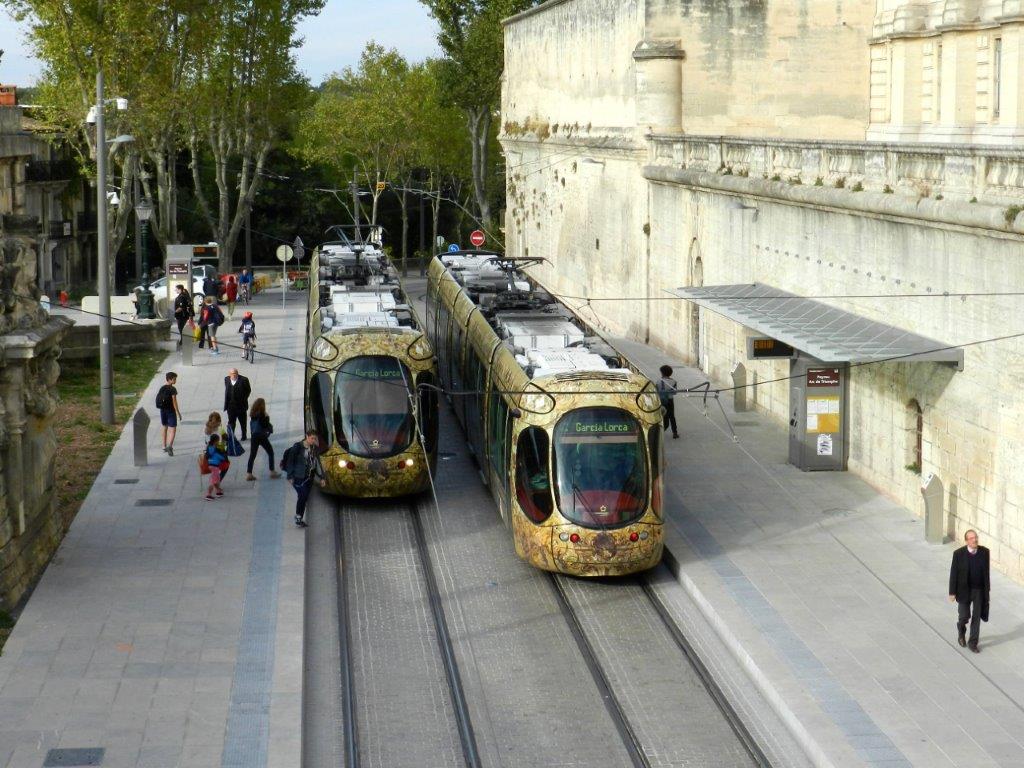 Photographie de la station « Peyrou – Arc de Triomphe » de la ligne 4 de tramway, prise le lundi 10 octobre 2016. Copyright : Anje34