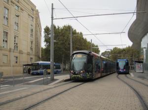 Vers 10h40, avant de regagner son domicile par la ligne 3, le webmestre, qui souhaitait prendre plusieurs photos à la station « Gare Saint-Roch », a laissé filé une rame direction « Mosson », mais la rame direction « Juvignac » qui était annoncée « Proche » n’est arrivée qu’une douzaine de minutes plus tard. Sur le quai d’en face, le tableau électronique d’information mentionnait des rames de la ligne 3 vers « Lattes Centre », mais les rames qui se présentaient affichaient le nom du terminus provisoire « Rives du Lez ».