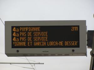 - Photographie du panneau électronique d’information du quai 4a du terminus « Garcia Lorca », le dimanche 16 octobre 2016 à 10h22. Copyright : Edouard Paris