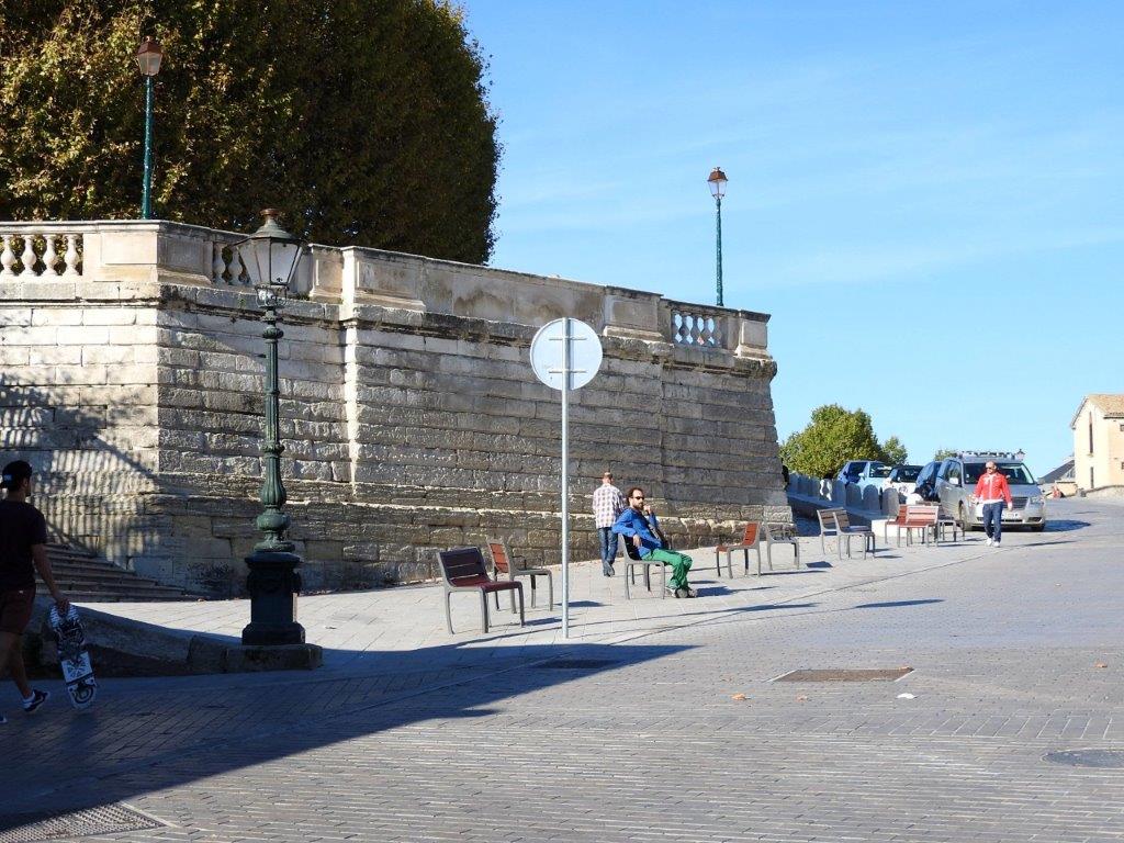 Place Giral à Montpellier, au pied de la promenade du Peyrou, des bancs et chaises pris en photo le mardi 18 octobre 2016, à la veille de l’opération baptisée « Tout doit disparaître ! ». Copyright : Anje34