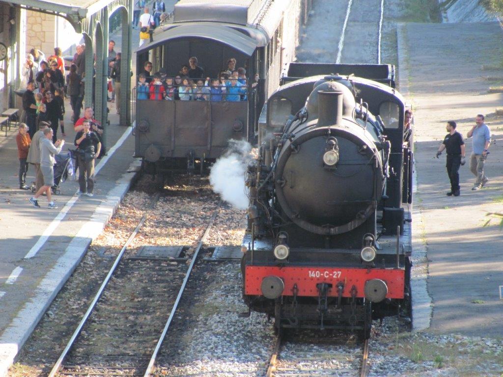 En gare d’Anduze, la locomotive 140 C 27 est photographiée au moment où elle remonte vers l’entrée du tunnel où elle effectuera une marche arrière pour faire le plein d’eau puis se mettre en tête du Train à Vapeur des Cévennes, le dimanche 30 octobre 2016. Copyright : Edouard Paris