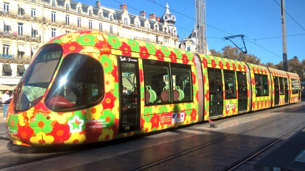 La rame 2056 Citadis 302 Alstom, tout comme quatorze autres rames du même type, va faire peau neuve dans les mois à venir. Photo prise à la station « Comédie », le lundi 31 octobre 2016. Copyright : Edouard Paris