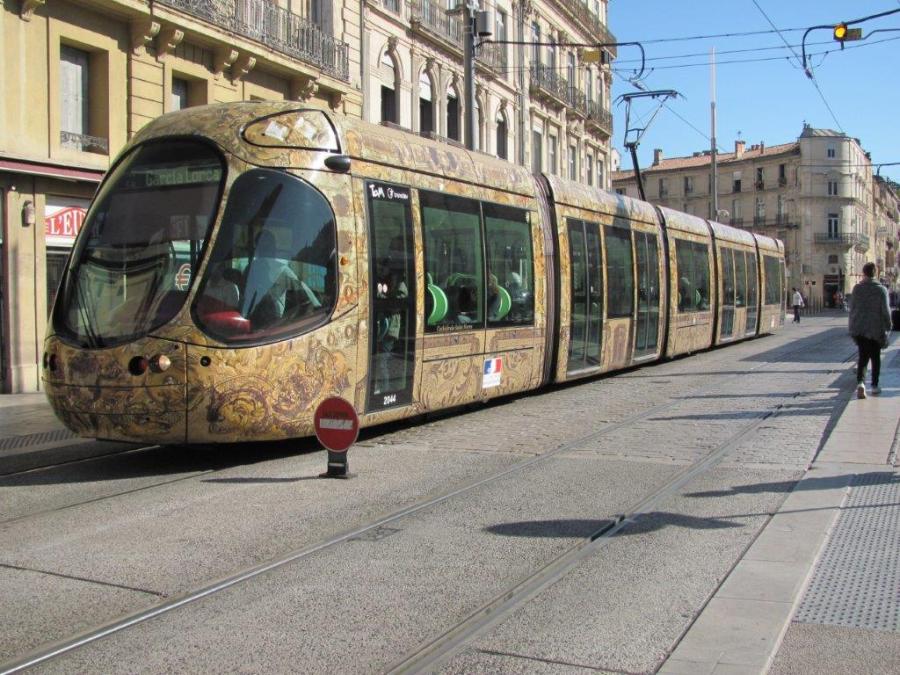 A 11h47, le lundi 31 octobre 2016, la rame 2044 Citadis 302 Alstom d’une capacité de 212 places, opérant sur la ligne 4 de tramway bouclée, quitte la station « Observatoire » en direction du boulevard du Jeu-de-Paume avec une vingtaine de voyageurs à bord. Copyright : Edouard Paris