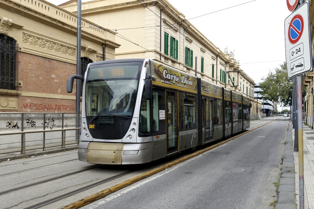 A Messine, la rame 08T Cityway Alstom est photographiée sur la via 1 Settembre, en direction du terminus Bonino, le jeudi 19 mai 2016. Coptyright : Yvon Brument