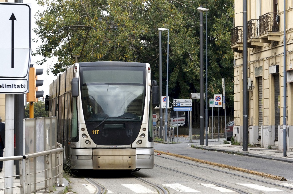 A Messine, la rame 11T Cityway Alstom est photographiée sur la via 1 Settembre à l’approche de la viale San Martino, le 19 mai 2016