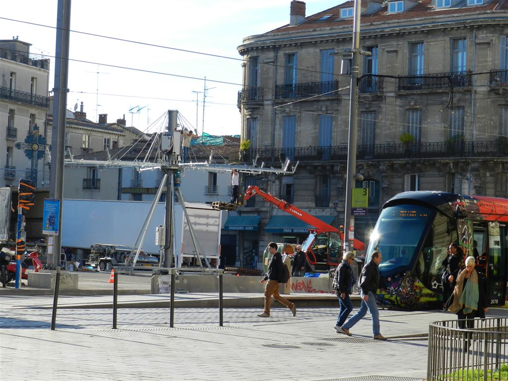 Le carrousel de la place de la Comédie à Montpellier s’installe pour dix mois place Alexandre-Laissac. Photo de son montage prise le mercredi 16 novembre 2016. Copyright : Anje34