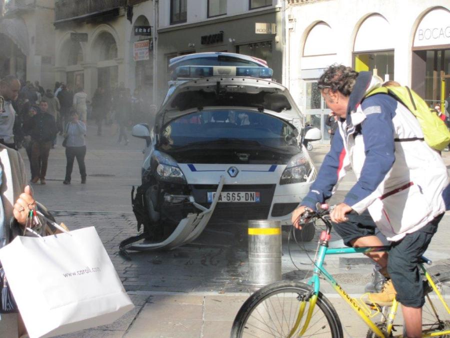 Et il y a ceux qui ne dépassent pas les bornes, rue de la Loge à Montpellier, le samedi 19 novembre 2016 à 12h07. Copyright : Edouard Paris
