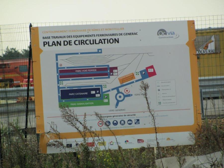 Panneau fixé à proximité de l’entrée de la base travaux des équipements ferroviaires de Générac photographié le samedi 3 décembre 2016. Copyright : Edouard Paris