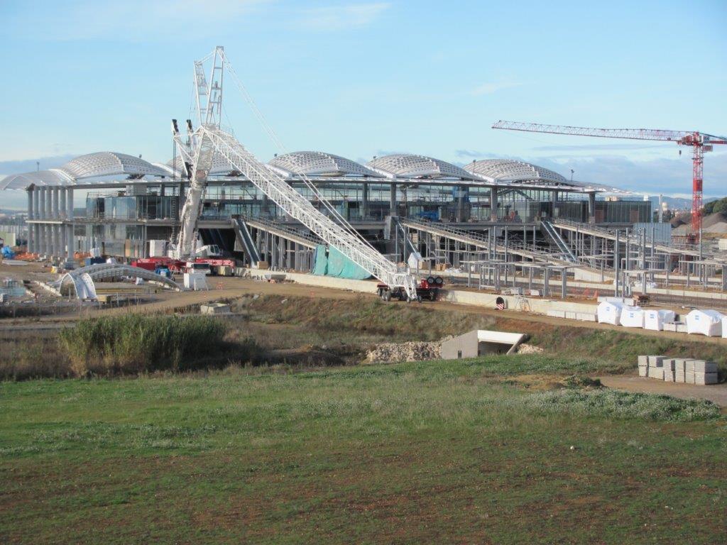 Avancement des travaux de la gare TGV Sud de France au samedi 24 décembre 2016. Copyright : Edouard Paris