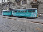 - Photographie d’une motrice articulée double caisse numéro 4732 (année 1960) de type 4700, pelliculée Deliveroo, via Orefici à Milan, le samedi 3 septembre 2016. Copyright : Laure C