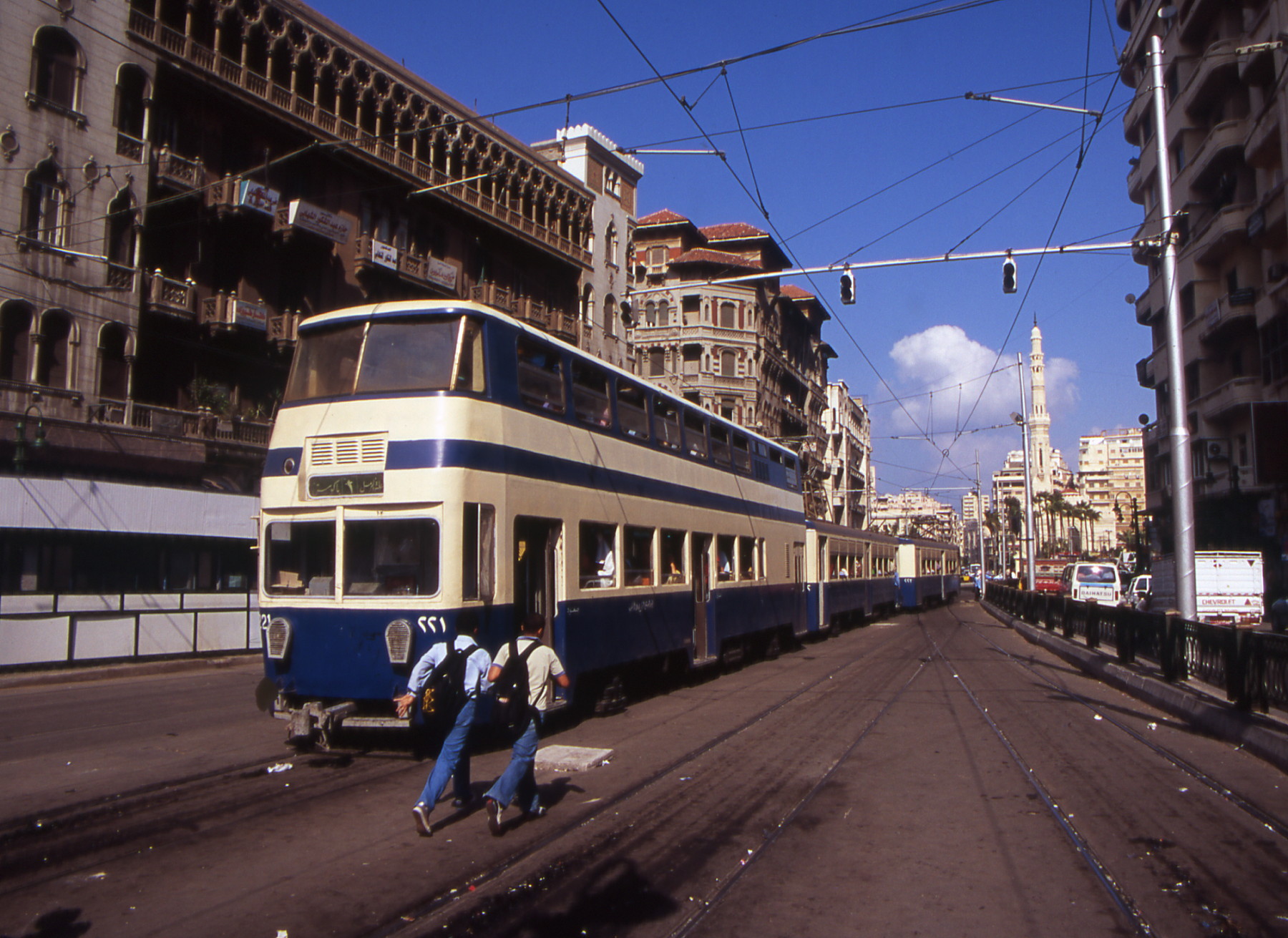 Motrice 221 Kinki Sharyo à double niveau sans pantographe d’une rame comprenant trois motrices photographiée à la station « Ramleh » à Alaxandrie, le lundi 20 octobre 2008. Copyright : Edgar Chaptal