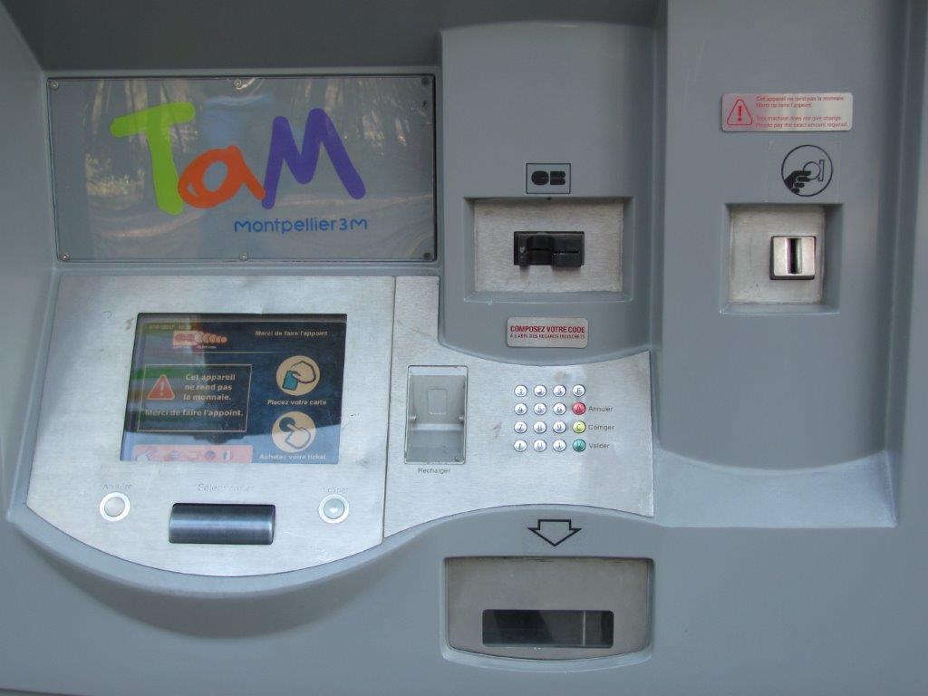 Plaque gravée appliquée au dessus du clavier de composition du code du distributeur automatique de titres de transport du terminus « Jacou » de la ligne 2. Photo prise le samedi 7 janvier 2017. Copyright : Edouard Paris