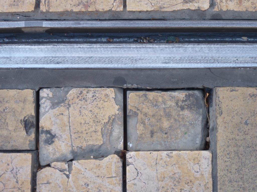 Le même bout de rail du réseau de tramways de Montpellier photographié le samedi 14 janvier 2017 après le passage de la meuleuse de la société italienne Mecno Service. Copyright : Louis Ferdinand