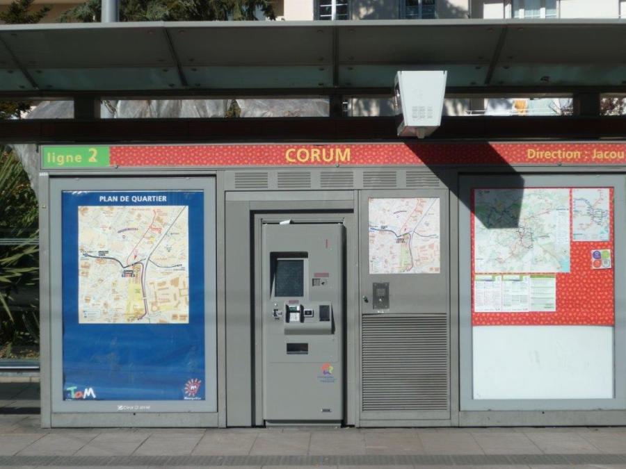 Un des deux nouveaux distributeurs automatiques de titres de transport de la station « Corum », ligne 2, photographié le samedi 4 février 2017. Copyright : Edouard Paris