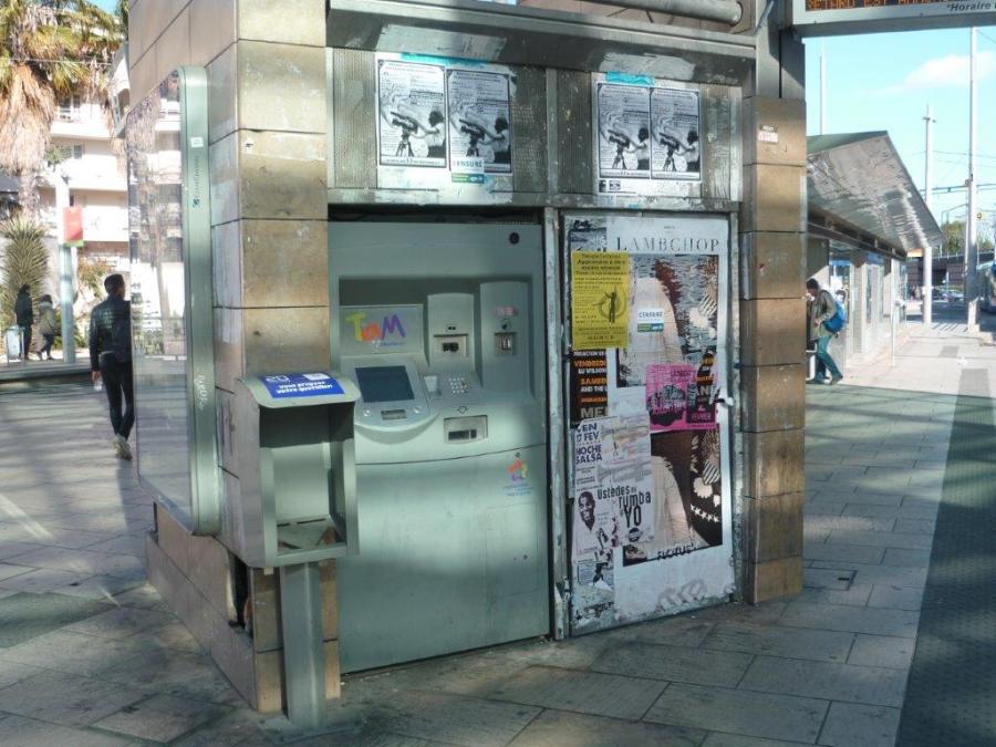 Un des deux distributeurs automatiques de titres de transport de première génération photographié à la station « Corum », lignes 1 et 4, le samedi 4 février 2017. Copyright : Edouard Paris