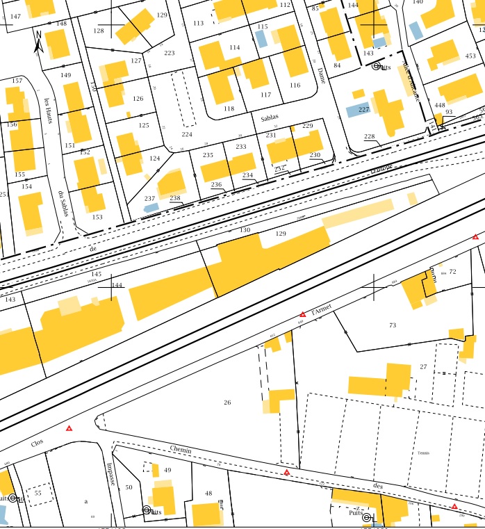 Les photos précédentes ont été prises, à la hauteur de la parcelle AR 145 en nature de voie routière. Document : cadastre.gouv.fr