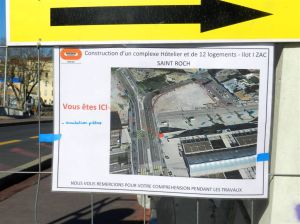 - Autre schéma de cheminement piéton, chantier du complexe architectural « Hôtel St-Roch – Belaroia » oblige. Photo prise le vendredi 17 février 2017. Copyright : Anje34
