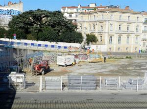 - Ça commence à s’activer du côté du chantier « Hôtel St-Roch – Belaroia » à Montpellier. Photo prise le vendredi 17 février 2017. Copyright : Anje34