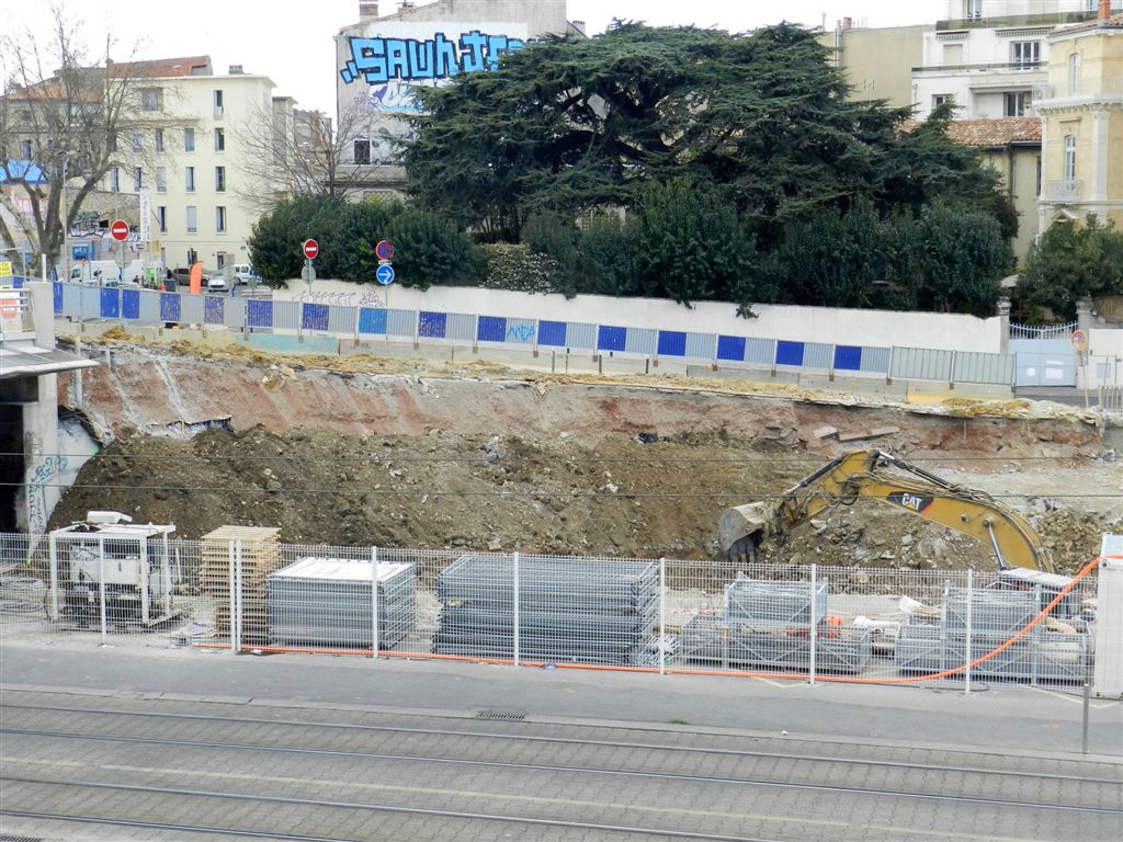 Aperçu du chantier « Hôtel St-Roch – Belaroia » depuis une terrasse de la gare Saint-Roch de Montpellier, le vendredi 24 février 2017. Copyright : Anje34
