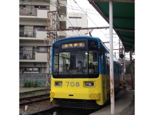 - A Osaka, la motrice 708 est photographiée à la station « Sumiyoshi » (HN10) » au sud de la branche « Hankai Uemachi Line », le samedi 18 mars 2017. Copyright : Karine D