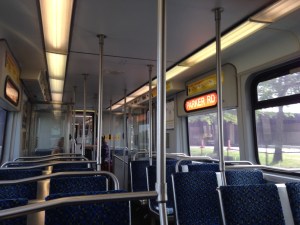 - A Dallas, aménagement intérieur d’une rame SLRV Kinki Sharyo, partie motrice B de la rame 153, le mercredi 22 mars 2017. Copyright : Karine D