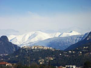 - Le village perché de La Roquette-sur-Var photographié depuis un autorail des Chemins de fer de Provence assurant la liaison Nice – Digne, le dimanche 26 mars 2017. Copyright : Michel Bozzola