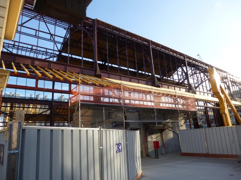 Verrière et sa structure métallique de type Eiffel en cours de reconstruction au dessus du parking souterrain Nice Gare du Sud, photographiées le dimanche 26 mars 2017. Copyright : Michel Bozzola