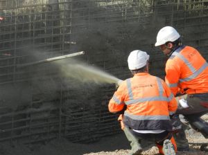 - Chantier « Hôtel St-Roch – Belaroia », projection de béton au niveau du mur de soutènement côté rue Pagézy à Montpellier, le mercredi 8 mars 2017. Copyright : Anje34
