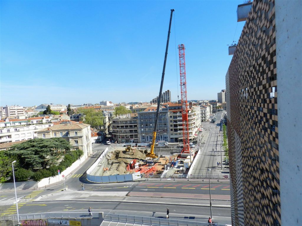 Prise de vue du chantier « Hôtel St-Roch – Belaroia » depuis le niveau P+8 du parking Saint-Roch à Montpellier, le jeudi 30 mars. Copyright : Anje34