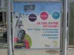 - A Brest, photographie d’une affiche « Le ciel entre en ligne ! » à la station « Liberté » de la ligne A de tramway, le samedi 22 avril 2017. Copyright : Edouard Paris