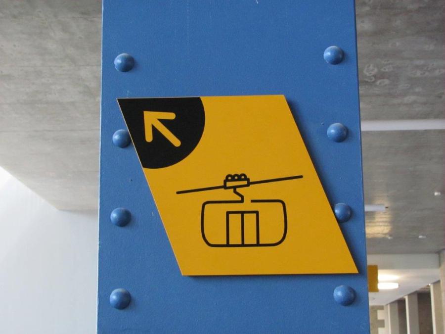 Pictogramme indiquant la direction de la station « Ateliers » du téléphérique urbain de Brest. Photo prise le samedi 22 avril 2017. Copyright : Edouard Paris