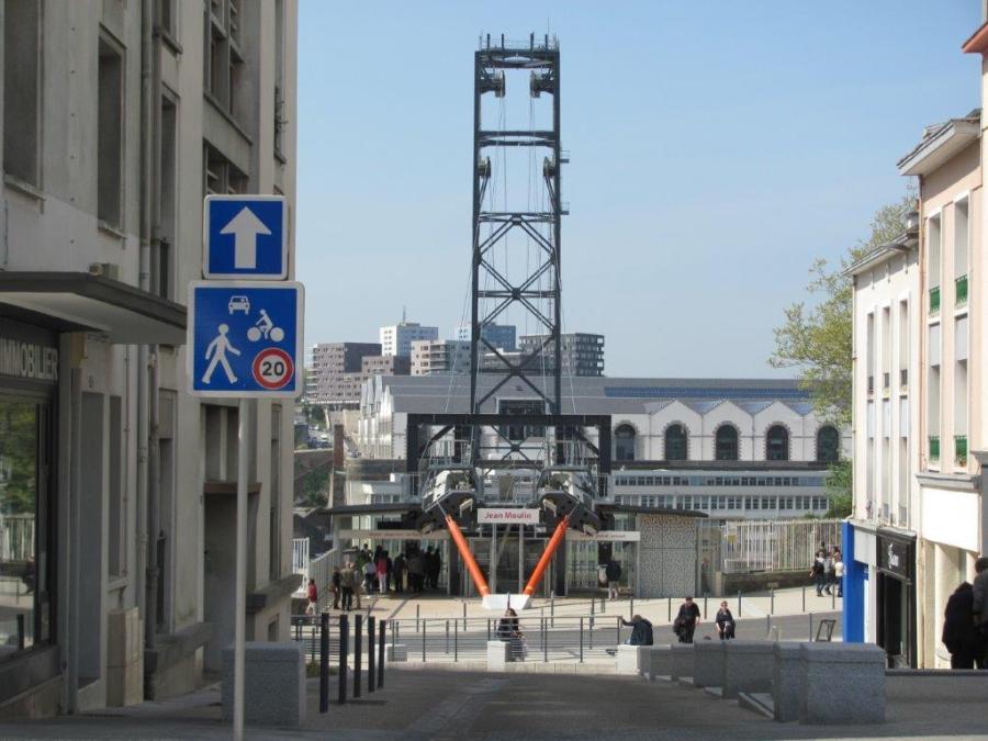 La station « Jean Moulin » du téléphérique C photographiée depuis la rue Ducouedic à Brest, le samedi 22 avril 2017. Copyright : Edouard Paris