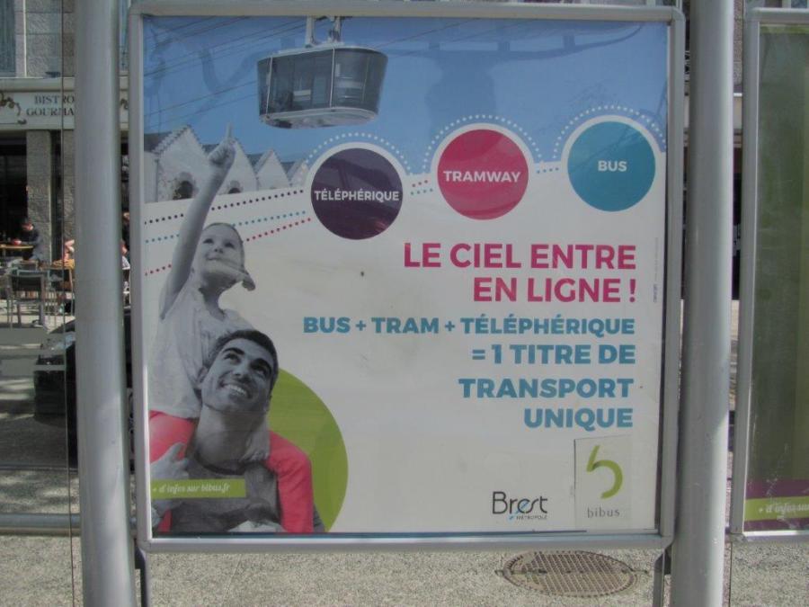 A Brest, photographie d’une affiche « Le ciel entre en ligne ! » à la station « Liberté » de la ligne A de tramway, le samedi 22 avril 2017. Copyright : Edouard Paris