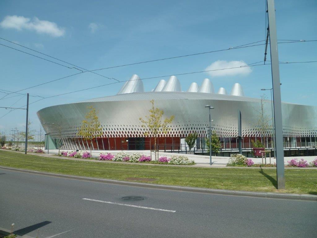 La Brest Arena, une réalisation du cabinet Herault-Arnod Architectes, a été inaugurée le samedi 13 septembre 2014. Elle est desservie par la station « Polygone » de la ligne A de tramway. Photo prise le samedi 22 avril 2017. Copyright : Edouard Paris