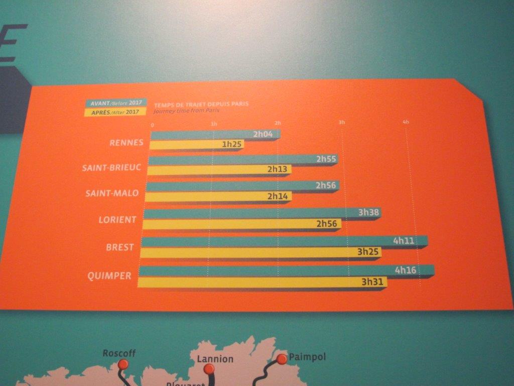 Temps de parcours valables à compter du dimanche 2 juillet 2017 entre la gare Paris Montparnasse et les principales villes bretonnes. Photo prise le samedi 15 avril 2017. Copyright : Edouard Paris