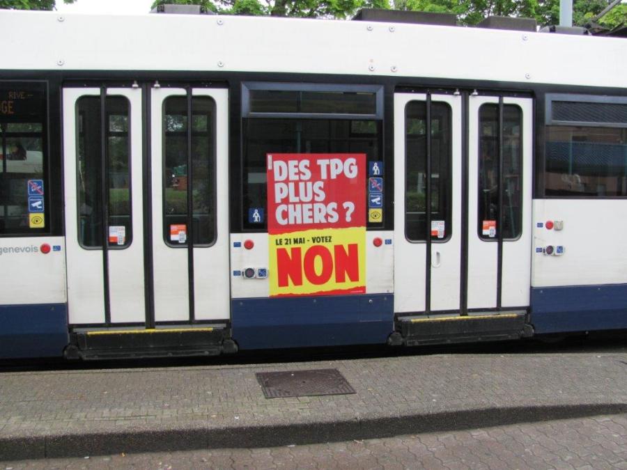 Le dimanche 21 mai 2017, le peuple genevois est notamment appelé à se prononcer sur les tarifs unireso. Photo prise au terminus « Moillesulaz » de la ligne 12, le lundi 8 mai 2017. Copyright : Edouard Paris
