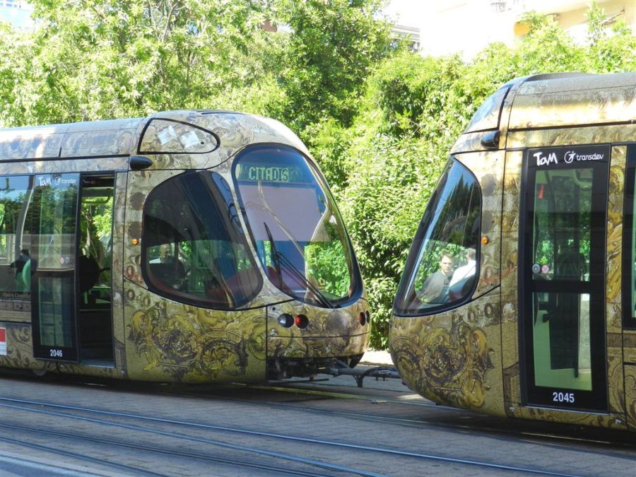 Ce lundi 15 mai 2017, la rame 2046 Citadis 302 Alstom est venue prêter main forte à la rame 2045 Citadis 302 Alstom tombée en panne peu après la station « Rives du Lez » voie direction « Mosson » pour la ligne 1 et direction « Garcia Lorca 4b » pour la ligne 4. Copyright : Anje34
