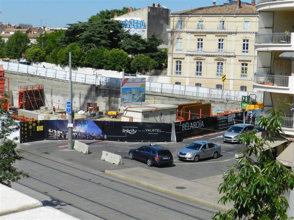Vue sur la palissade du chantier « Hôtel St-Roch – Belaroia », rue Jules-Ferry à Montpellier, le mardi 23 mai 2017. Copyright : anje34