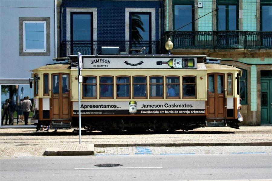 A Porto, la motrice historique 213 Brill 28 est photographiée sur une voie du terminus « Passeio Alegre » de la ligne 1 à vocation exclusivement touristique, le lundi 22 mai 2017. Copyright : Christophe Clément