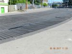 - Gros plan sur l’affaissement des lattes de bois de la plateforme du tramway entre le Pont-de-Lattes et la station « Du Guesclin » de la ligne 1, le jeudi 8 juin 2017. Copyright : Anje34