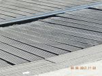 - Gros plan sur l’affaissement des lattes de bois de la plateforme du tramway entre le Pont-de-Lattes et la station « Du Guesclin » de la ligne 1, le mardi 23 mai 2017. Copyright : Anje34