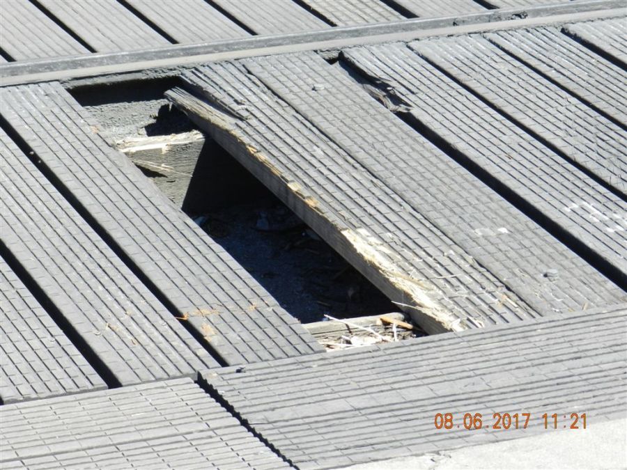 La latte de bois manque toujours à l’appel sur la plateforme du tramway entre le Pont-de-Lattes et la station « Du Guesclin » de la ligne 1, le jeudi 8 juin 2017. Copyright : Anje34