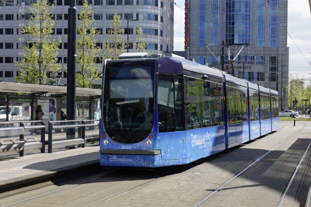Photographie de la rame 2053 Citadis 302 Alstom à la livrée Disneyland Paris 25e anniversaire, station « Rotterdam Centraal perron C », le mardi 9 mai 2017. Copyright : Yvon Brument