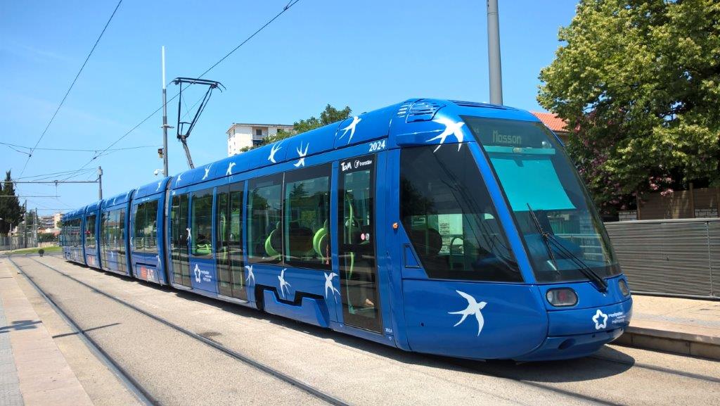La rame 2024 Citadis 401 Alstom de la ligne 1 est exceptionnellement photographiée à la station « Jules Guesde » de la ligne 3, en direction de « Mosson », le samedi 24 juin 2017 à 13h50. Copyright : Edouard Paris