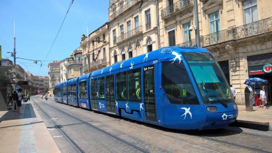 La rame 2029 Citadis 401 Alstom de la ligne 1 est exceptionnellement photographiée à la station « Observatoire » commune aux lignes 3 et 4, en direction de « Mosson », le samedi 24 juin 2017 à 14h04. Copyright : Edouard Paris