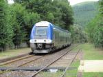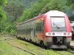 - L’AGC X 76771/72 trois caisses, assurant la liaison du matin Clermont-Ferrand – Nîmes, est photographié à son arrivée en gare de Chamborigaud le samedi 1er juillet 2017. Copyright : Edouard Paris